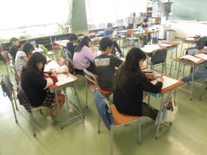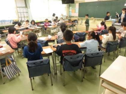 2学期最後の土曜授業日の朝は、算数の「ベーシックドリル」を使った学習タイムです。自分の苦手な学習に取り組んでいます。