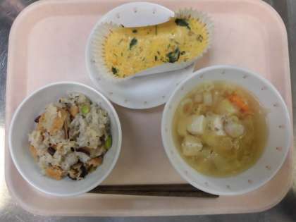 まめまめおこわ・千草焼き・豆腐汁