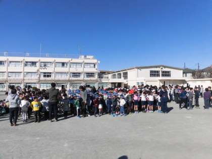 1月の避難訓練は、給食室から出火の家事を想定して行いました。給食を作っていただいている方も初期消火や通報の確認を行いました。歓送した日が続いています。ご家庭でも火事には十分注意をしていただきたいと思います。