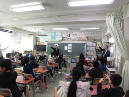 「政治のはたらき」について学習している6年生。今日は、税理士の方に来ていただき、人々の願いを実現する政治を進めるうえで大切な「税金」について教えていただきました。クイズなども取り入れながらわかりやすく教えていただきました。