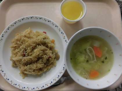 ジャンバラヤ・ヌードルスープ・みかんゼリー