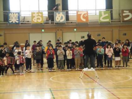 4年生は、「ルパン三世のテーマ」をみんなで合奏しました。たくさん練習した、素晴らしい演奏に6年生も聞き惚れていました。