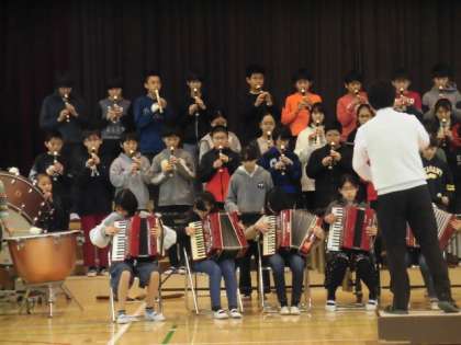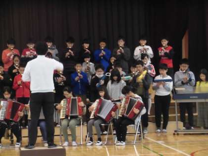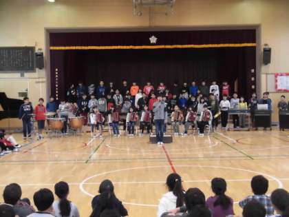 6年生からのお礼の出し物は、「パイレーツ・オブ・カリビアン」の合奏です。みんなで力を合わせた力強い演奏にアンコールの拍手が起こりました。2回と素晴らしい演奏でした。
