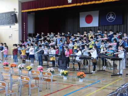 入学式の準備が終わった体育館では、新2年生が入学式の歓迎の演技の練習をしています。1年前は、入学式で見ていた側が、今年は迎える番になりました。当日は、練習の成果をしっかり発揮しましょう。6年生は、1年生と一緒の入場の仕方を確認したり、代表の言葉の練習をしたりしました。武蔵丘の最上級生としてあたたかい気持ちで新入生をむかえましょう。