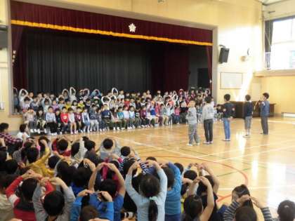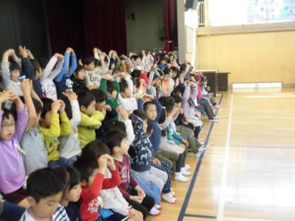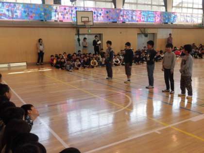 昨年度の代表委員が企画し、司会などの運営をしてくれました。代表委員の考えた「武蔵丘小クイズ」に挑戦しています。1年生だけでなく、他の学年の子も挑戦しています。10問、全問正解の子もたくさんいました。