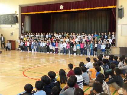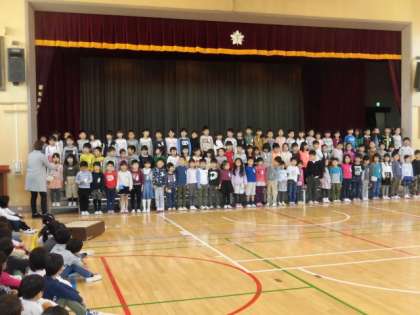 1年生は、お礼の言葉と歌を歌いました。1週間でしっかりと言葉や歌を覚えて元気に歌いました。他の学年からはアンコールの手拍子も出ました。とても上手にできました。