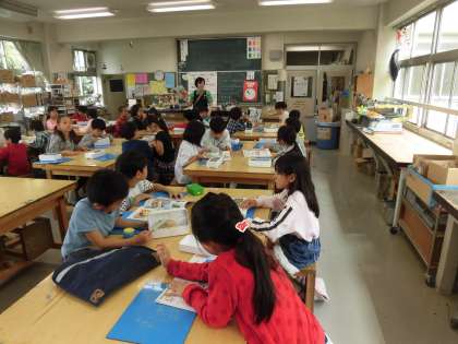 1年生の時に図工室で授業を受けていた3年生。1年ぶりに図工室での図工が始まります。森川先生と1年生の時のことも思い出しながら、図工室の使い方などを確認しました。今年は展覧会の年です。たくさんの作品を作っていきましょう。