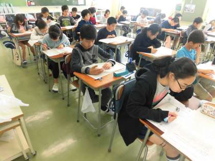 先週、区の学習習得調査を受けた6年生。今日は、全国学力・学習状況調査に挑戦です。国語と算数の問題に真剣に取り組みました。