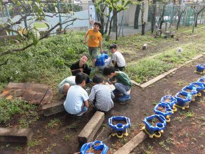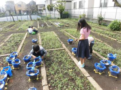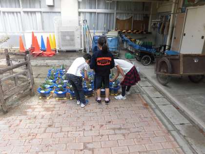 3年生になって理科の授業が始まった3年生。今日は虫眼鏡をもって校庭に観察に出ました。花壇など様様なところで虫や植物を観察しました。