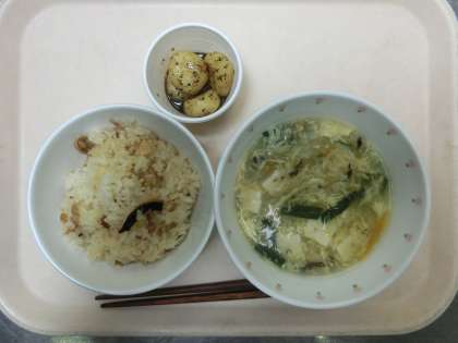 中華おこわ・にら玉スープ・ごまだれ白玉だんご