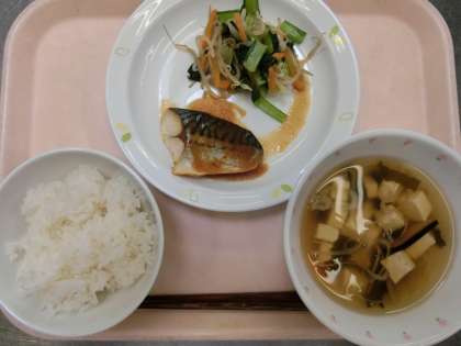 ごはん・魚のバーベキューソース・おひたし・すまし汁
