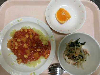 チリビーンズライス・ほうれんそうサラダ・オレンジ