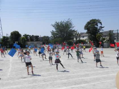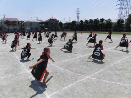 全校練習が終わった後は、学年ごとの最後の練習です。3年生と4年生は、それぞれの演技を見合いました。手拍子をしたりして、盛り上げながら見ていました。