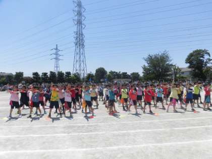 プログラム9番。2年生の演技「アイデア」です。色とりどりのTシャツと手に付けたバンダナがかっこいい2年生。自分たちで考えた振り付けもあり、1年生からの成長を感じます。みんな笑顔で楽しく最後まで踊りました。