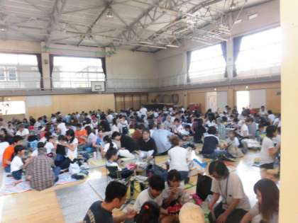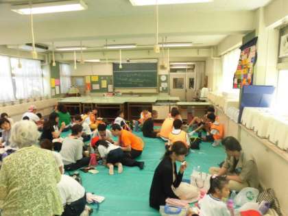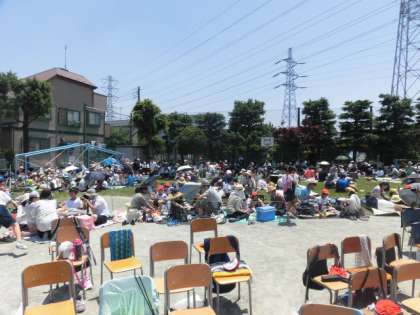 今年は、気温が高く進行を早めるためにPTA職員種目を行わずに昼食としました。お弁当の準備、お弁当の後の水筒の補給等、ありがとうございました。お家の人と食べるお弁当、子どもたちは楽しんでいました。オレンジのゼッケンを来た烏山中のボランティアの生徒も一生懸命仕事をしてくれました。お昼は、涼しい家庭科室で食べてもらいました。
