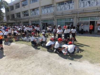 閉会式が終わった後で片付けをしました。5・6年生だけでなく、おやじ会の方、保護者の方も片付けを手伝ってくれました。ありがとうございました。保護者の方も暑い中での観覧でお疲れと思います。ゆっくりお休みください。運動会へのご協力、本当にありがとうございました。