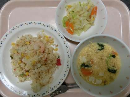 ナシゴレン・チーズのふわふわスープ・ポテト入りフレンチサラダ