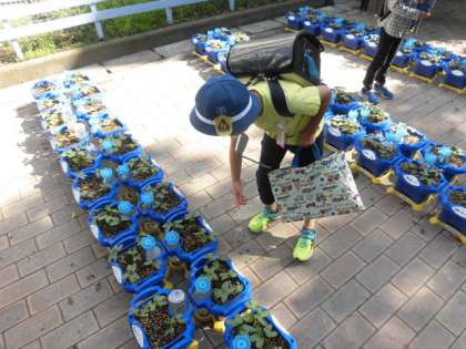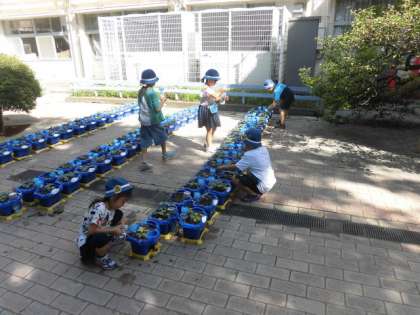 運動会の練習中も水やりを続けたあさがおが芽を出しました。たくさんの1年生が報告してくれました。大きく育つよう、これからもしっかりとお世話を続けましょう。