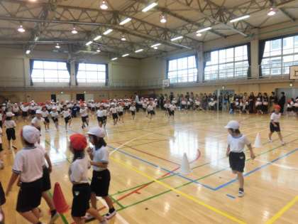 学校公開2日め。今日は、来年の夏に開催される「東京オリンピック・パラリンピック」への理解を深める「オリ・パラデー」です。これまでの来ていただいたことがあるアテネオリンピックの4×400mリレー代表の伊藤友広選手と水曜日のかけっこ教室で教えていただいている伊原コーチを招いて、短距離走の走り方について教えていただきました。雨のため体育館での開催でしたが、伊藤選手が見本で走ると大きな歓声があがりました。運動会は終りましたが、これから走るときに気を付けて取り組むとよいポイントをたくさん教えていただきありがとうございました。