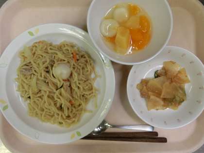 塩焼きそば・大根ときゅうりの中華和え・フルーツ白玉