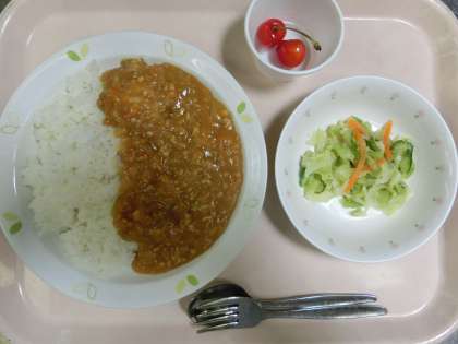 キーマカレーライス・キャベツサラダ・くだもの