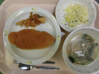 ぶどうぱん・魚のエスカベージュ・パセリポテト・ビーフンスープ