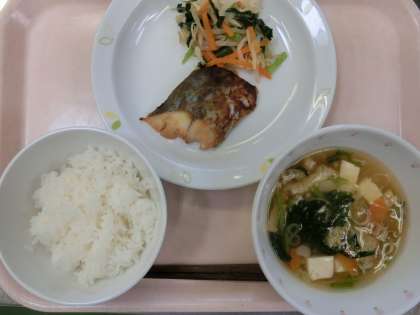 ごはん・魚の西京焼き・きのこ和え・吉野汁