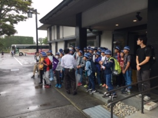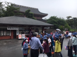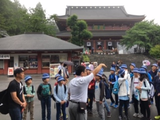 最初の見学地、日光東照宮に到着。クラスごとにガイドさんについてもらって、見学をします。