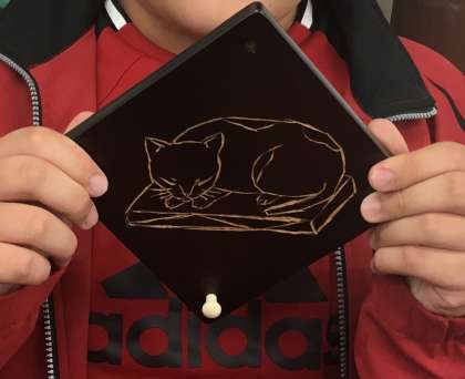 同じ絵柄でも、彫られた線の太さなどで雰囲気が違います。世界にひとつしかないオリジナル作品です。家に持って帰るのを楽しみにしていてください。