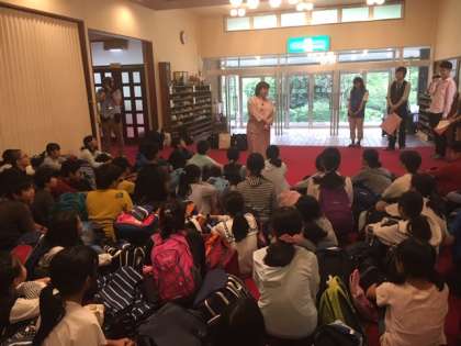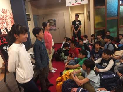 日光彫体験を終えて、3日間お世話になる梅屋敷旅館に到着。ロビーで開校式をしました。女将さんのお話をしっかりと聞いて、よろしくお願いしますを元気に言ってから3日間の生活を始めます。