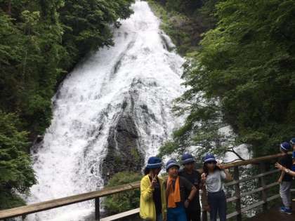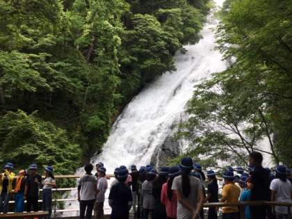 お弁当を食べているときは、大雨でしたが、食べている途中で雨がやんだので、湯滝を見学して写真を撮りました。この後は、バスで湯の湖にむかいます。