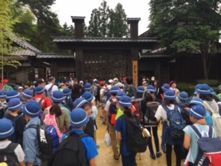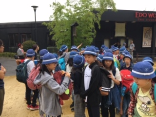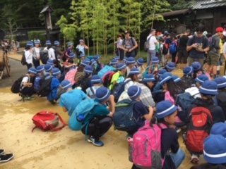 日光江戸村に到着しました。雨も止みました。並んで開門を待っています。