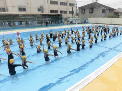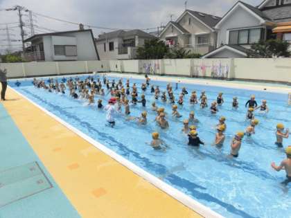 今日は良い天気の中、水泳指導を行っています。とても気持ちよさそうです。