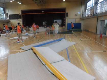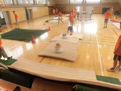 スペシャルサマー2日めは、おやじの会による「MUSASHI」です。体育館では、3・4年生の部が始まりました。一つ一つ慎重にクリアしながら頑張って取り組んでいます。