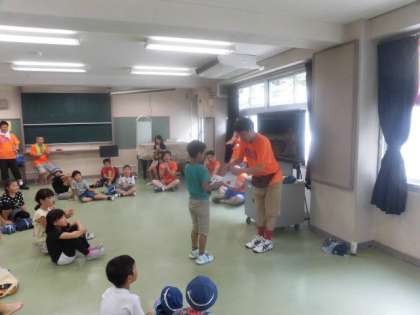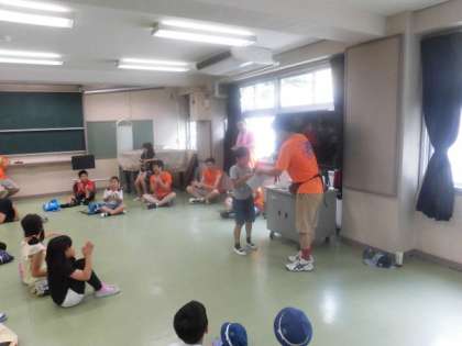 3・4年生の部が終わり、涼しい集会室で表彰式です。1回めより記録が早くなっていました。上位の人はメダルをもらいました。みんな自分の記録を書いた記録証をもらいました。次は、5・6年生の部です。