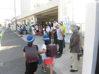 地域や保護者、烏山中学校のみなさんと一緒に取り組む2学期のあいさつキャンペーンが始まりました。本当は昨日からの予定でしたが、台風15号の影響で登校を繰り下げたので、今日が1日めとなりました。朝から当番の子どもたちが元気にあいさつをしてくれました。13日まであいさつで学校を元気にしていきましょう。