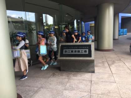 首都高速で東京のまちの様子を見ながら、新江東清掃工場に到着。説明を聞いてから見学です。