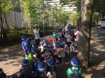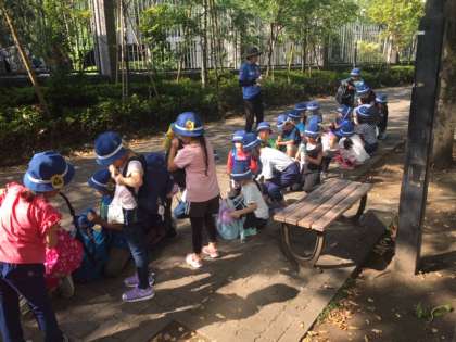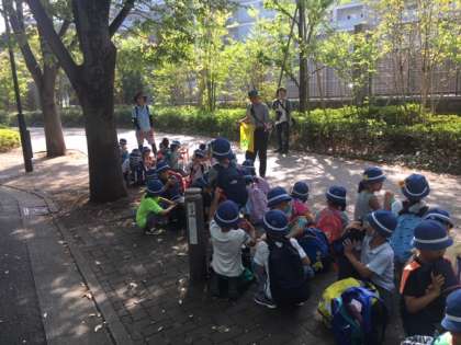 芦花小学校のそばで水分補給の休憩です。あと少し、頑張って歩きましょう。