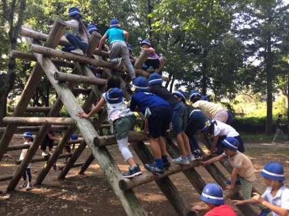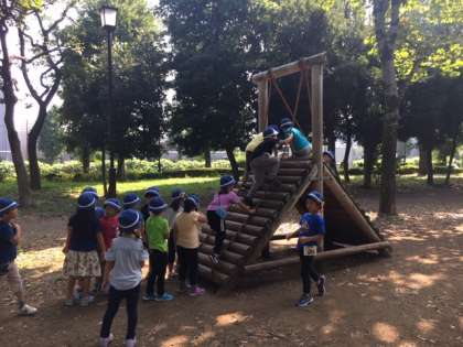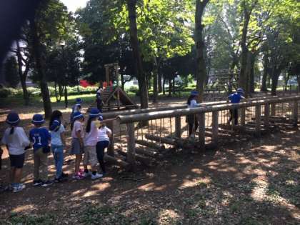 アスレチック広場に到着。注意を聞いてから、アスレチック遊びを始めました。