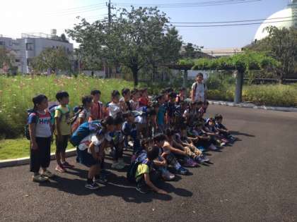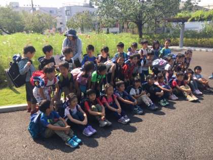 楽しい遊びを終えて、クラスごとに集合写真を撮っています。