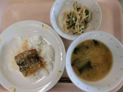 魚のかば焼き丼・もやしのごま風味・白菜のみそ汁