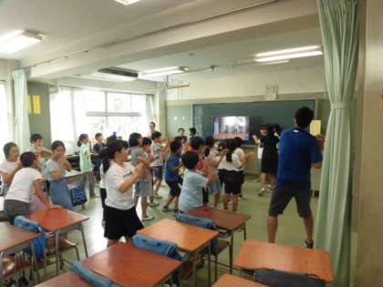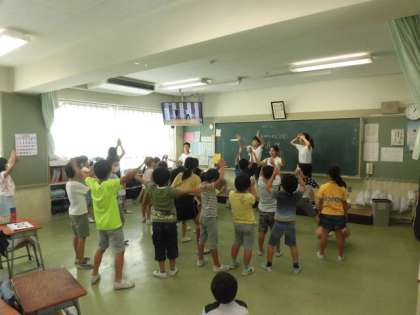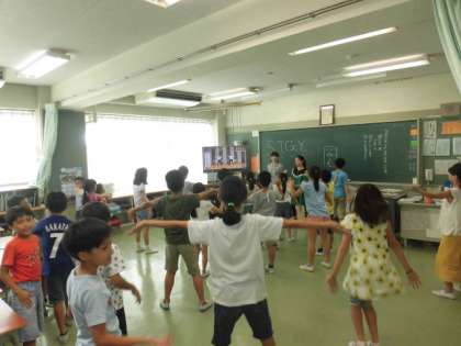 給食を食べ終わった後は、世田谷区のオリンピックの歌「おーいせたがや!」のダンスの練習です。講習を受けた6年生が見本を見せながら、1年生から5年生にしっかりと教えてくれました。1964年の東京オリンピックの開会式が行われた10月10日に、みんなでダンスの練習をしたのも思い出になるかもしれません。1回では覚えきれなかったと思います。これからもみんなで練習しましょう。