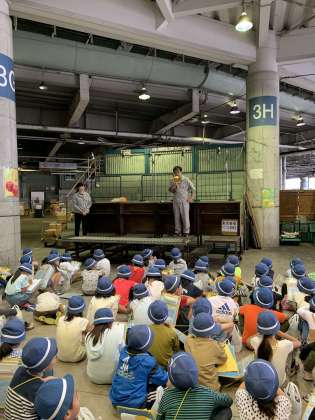 野菜のセリ場です。簡単な数字の出し方1〜10を教えて頂きました。覚えたかな?