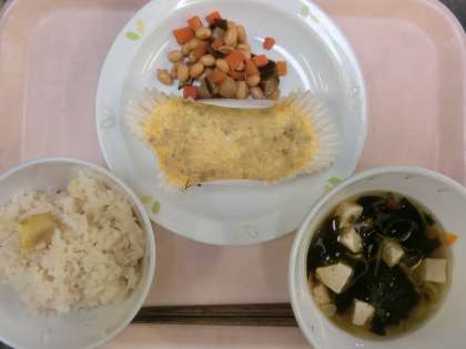 栗ごはん・切干大根の卵焼き・五目豆・すまし汁