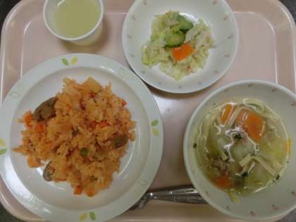 チキンライス・ヌードルスープ・ツナサラダ・リンゴゼリー