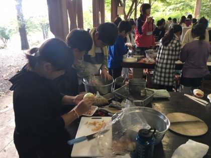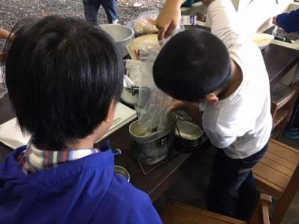 説明を聞いて、作業開始です。みんなで協力して美味しいカレーを作りましょう。お米も上手にたけますように!
