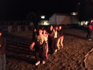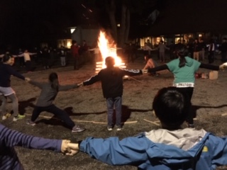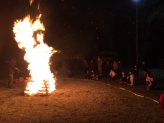 キャンプファイヤーが始まりました。係の子の進行で、みんな楽しんでいます。