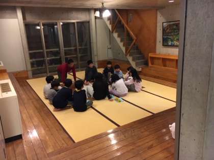 班長が集まって今日の反省をしています。班長会議で話し合ったことを班員に伝え、明日は、今日より良い行動ができるようにしていきましょう。健康観察も終わりました。ゆっくり休んで今日の疲れをとりましょう。おやすみなさい。