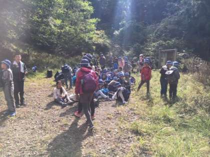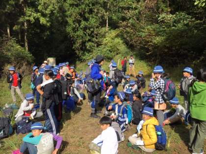 雨乞山の登山、休憩中。まだまだ頂上は先です。頑張りましょう。