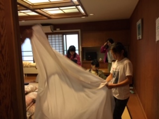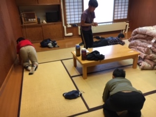 最後の部屋の片付けです。みんなで協力して、来た時よりもきれいにしましょう。